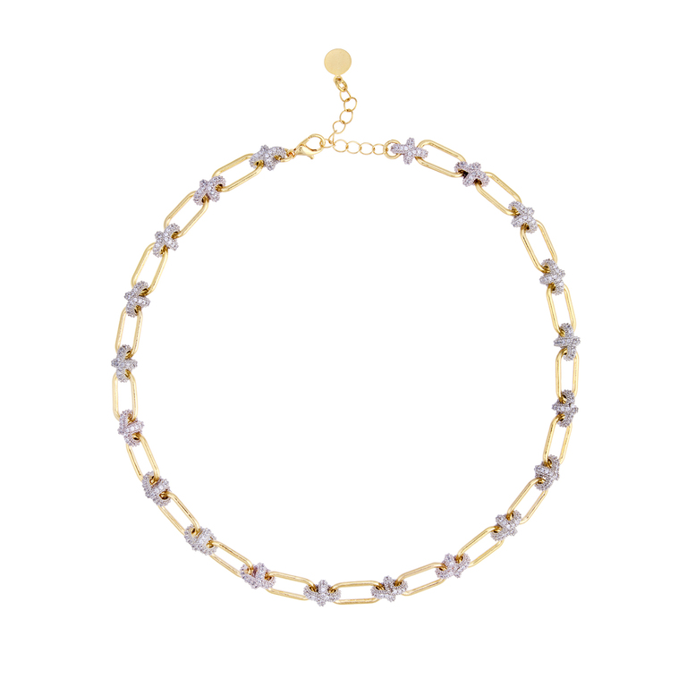 Kristal taşlı halka ile birleştirilmiş zincir kolye
