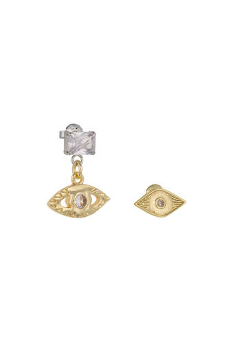 Göz formlu kristal ve baget taşlı asimetrik küpe